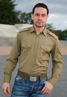 Add some vintage military style to your look with this khaki button-up. It’s thin, yet durable, so it doesn’t just look good; it feels good. Complete with shoulder epaulettes and button-flap chest pockets for an authentic appearance.