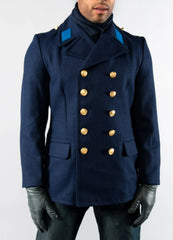 Modeled after the Kriegsmarine peacoat from WWII of the German Navy. This design is almost an exact copy. It took us 12 years to source and only a few pieces are left. Don't miss out on this unique and limited opportunity. There's no other pea coat in the world with this unique design. Especially 5 button double-breasted front.