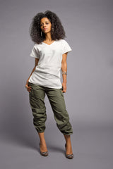 These relaxed Army cargo pants capture utility-chic style at its best. Crafted from 100% sateen cotton with a cropped silhouette and elasticized bands at the ankles, these pants are the perfect combination of comfortability and durability.