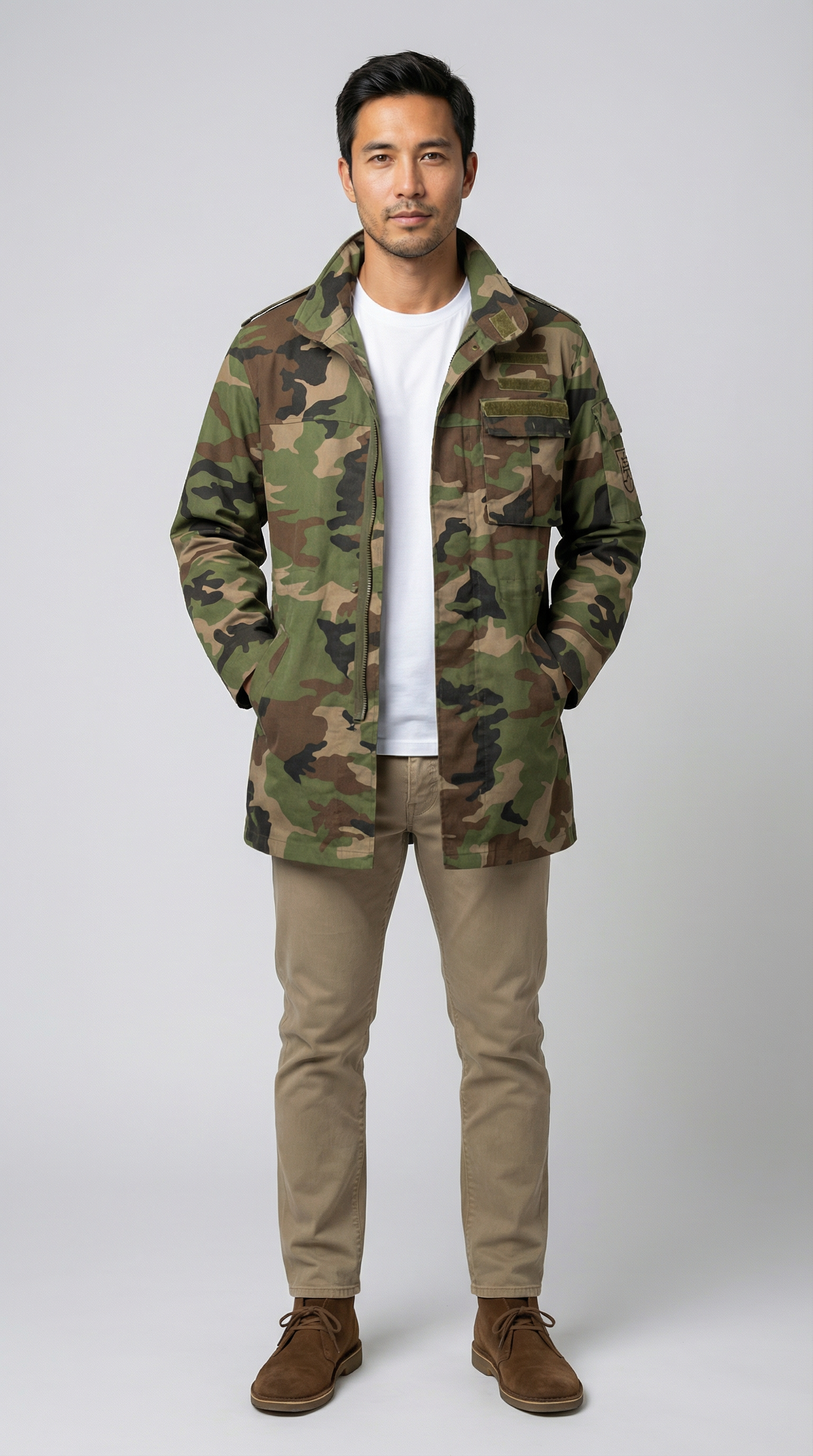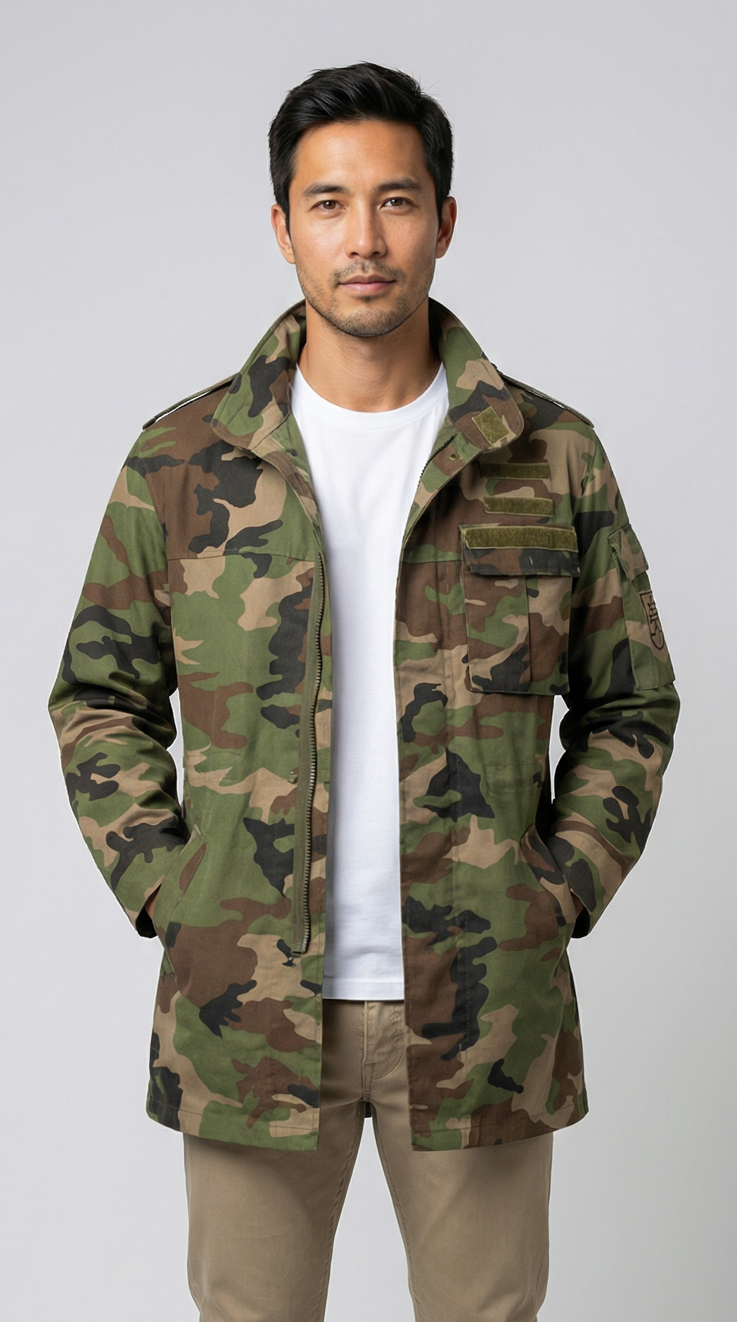 Experience the ultimate in outdoor fashion gear with our Classic Woodland Camo Central European Parka. This Slovakian woodland camo parka features a hoodie inside a zippered collar, 6 spacious pockets, and a durable cotton blend fabric. The eye-catching classic woodland camo pattern will keep you stylish while the above thigh length provides maximum coverage. Whether on a hike or a camping trip or on the prowl in the city concrete jungle, this parka is the perfect companion for any adventure.