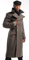 Command your presence with this black-collared overcoat. It’s reminiscent of the coats of WWII, showing that the style can withstand the test of time. Crafted with thick, 100% wool and finished with aluminum buttons, this double breasted overcoat will be the ideal accompaniment to all your winter voyages.