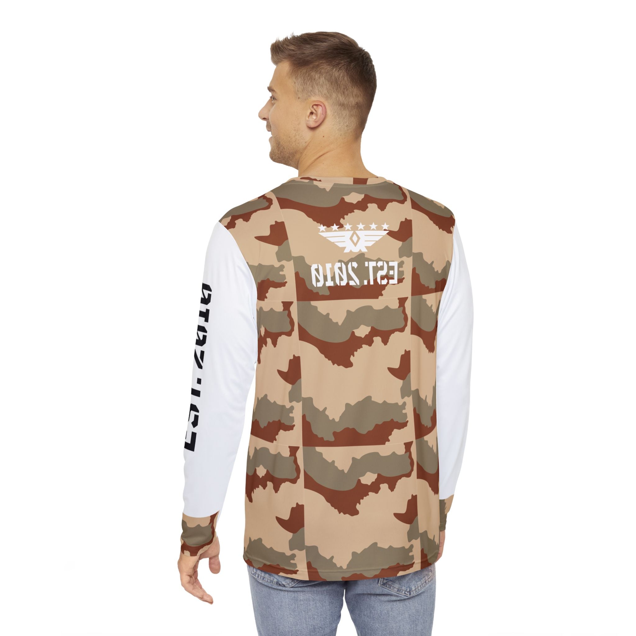 The TRV French Desert "Daguet" Camo Crewneck Sweatshirt features the distinctive three-color desert pattern introduced around 1990 and named after Operation Daguet, the French designation for the First Gulf War. Its sparse horizontal stripes of brown and tan over a sandy background replicate the primary desert uniform of French military forces. This authentic design offers a unique blend of historical significance and rugged style, perfect for those seeking functional military-inspired apparel with expert-level detail.