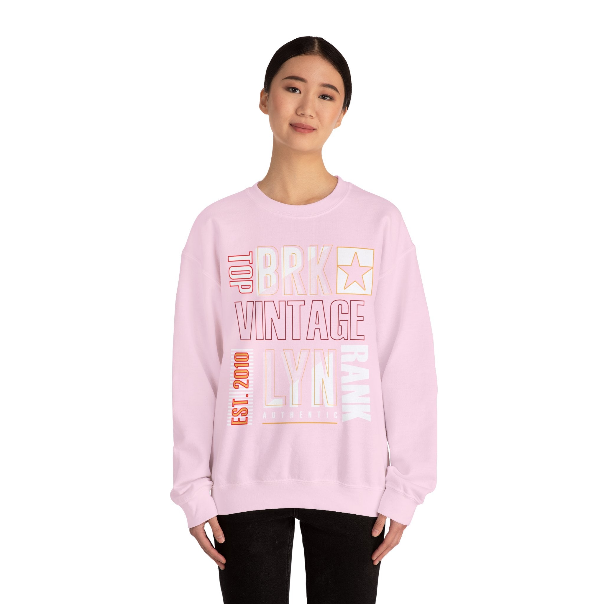 A modern and stylish Ladies TRV Modern Apparel Sweatshirt featuring a Brooklyn NYC graphic with Top Rank Vintage design element, showcasing the establishment year of 2010. This sweatshirt exudes an urban and trendy vibe, perfect for fashion-forward individuals looking to add a unique piece to their wardrobe. Ideal for those who appreciate vintage-inspired fashion with a contemporary twist. Suitable for casual wear and can be a great addition to holiday outfits or urban-themed celebrations.