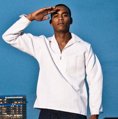 While every man needs a sensible white shirt in their wardrobe, the classic white button-up can look pretty stale. This vintage Navy style “middy” shirt combines the traditional white button-up with military style to create an elegant and exclusive look.