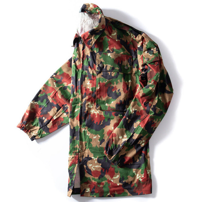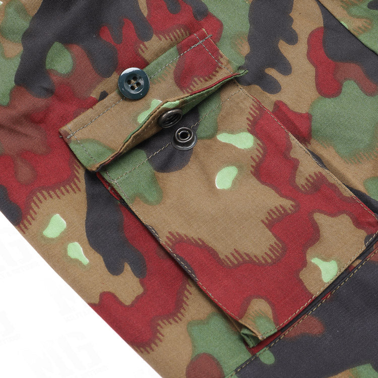 The Swiss TAZ M83 Alpenflage Field Jacket features the iconic TAZ 83 military camouflage pattern, also known as "Alpenflage" or "pizza camouflage". Based on a successful experimental design from World War II, this jacket provides all-terrain coverage and durability. Own a piece of Swiss Army history while staying fashionably camouflaged. Once used by the Swiss Army and now highly sought after by collectors. With its roots in Germany's World War II Waffen-SS and Wehrmacht, this jacket is a true masterpiece of all-terrain design.